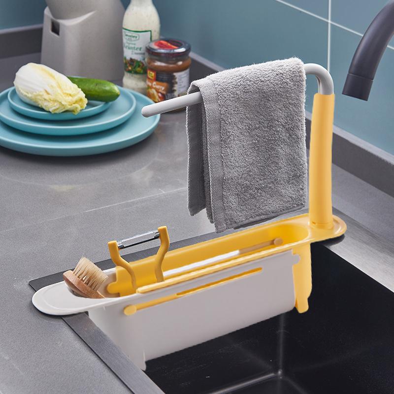 Ajustable para adaptarse a cualquier tamaño de fregaderos, almacenamiento de gran capacidad.