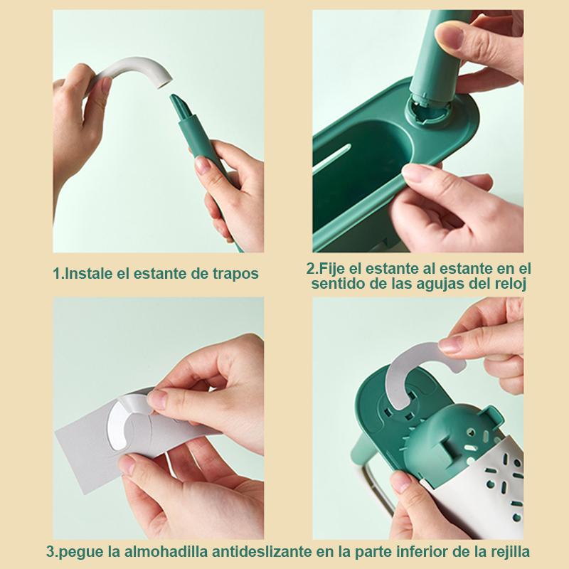 Cree un ambiente saludable manteniendo secos sus dispositivos de limpieza. Los orificios de drenaje están distribuidos uniformemente, lo que permite que el agua salga de forma segura por la parte inferior, lo que le da tiempo a las esponjas y trapos para que se sequen correctamente.