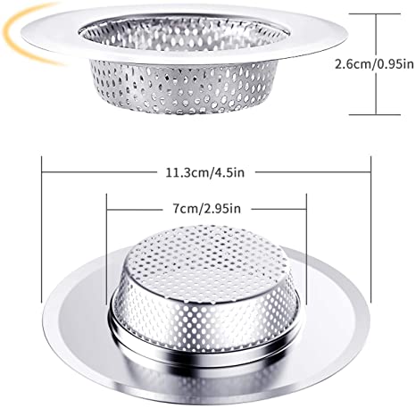 • Uso amplio: el colador de drenaje de malla se adapta a la mayoría de los desagües del fregadero y al lado de la basura. Diámetro exterior: 4.5 ”; filtro interior: 3 ”; profundidad: 1,5 ”; El borde ancho asegura que nuestro tapón del fregadero se ajuste a desagües más grandes, no solo para el fregadero de la cocina, también puede usarlo en el baño, el baño, la bañera, la alcantarilla del baño, etc.