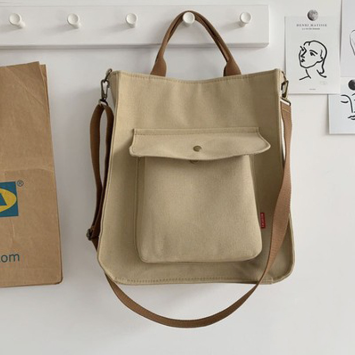 Bolso de mano casual de gran capacidad con cremallera y bolsillo exterior