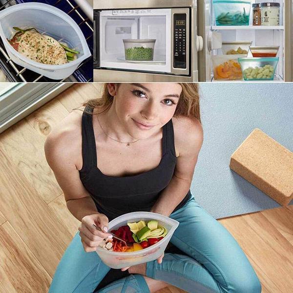 • 【Materiales de protección del medio ambiente】- Estas bolsas de silicona para almacenamiento de alimentos están hechas de silicona de grado alimenticio, ninguno de los químicos tóxicos. Respetuoso con el medio ambiente, antialérgico, reciclable, tiene una larga vida. Fácil de usar para cocina, microondas, nevera.