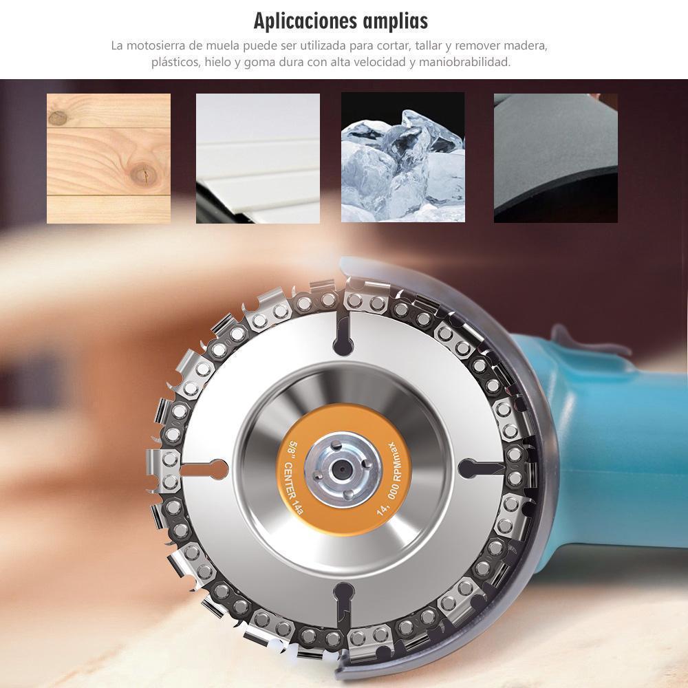• La sierra de cadena para muelas abrasivas facilita el corte, la talla, la eliminación y el modelado de la madera, los plásticos, el hielo y el caucho duro gracias a su velocidad y movilidad.