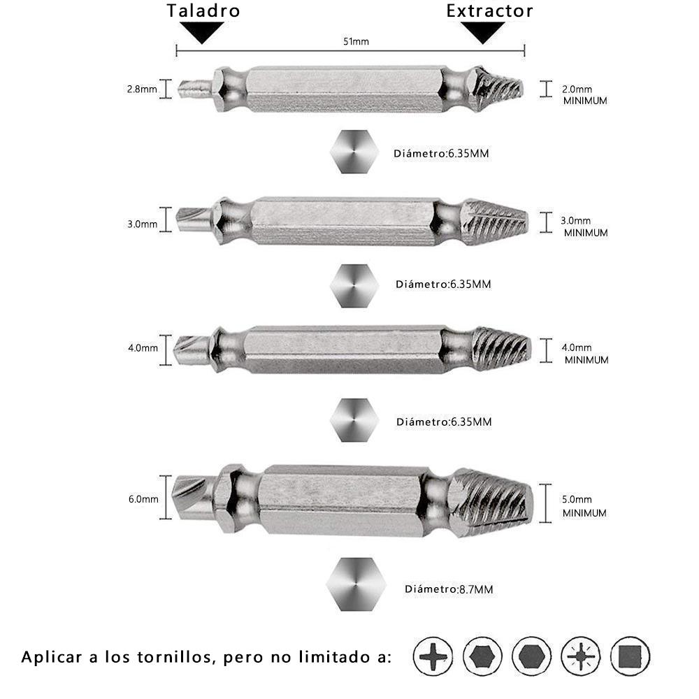 Juego de Removedor de Tornillos Dañado, 4 Piezas