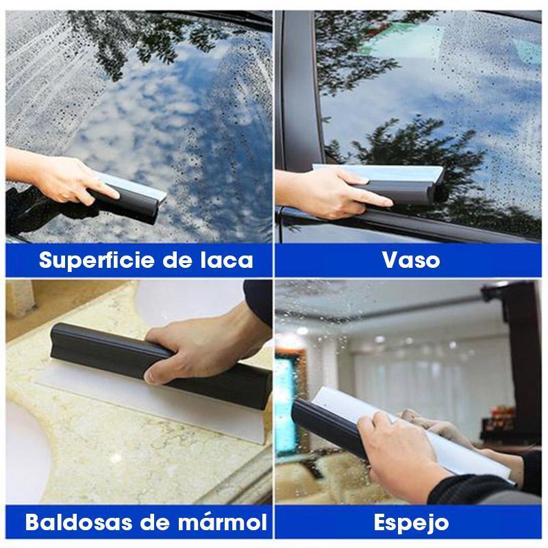 • Para secar, toque ligeramente el borde de silicona flexible de la cuchilla de agua con la superficie y extraiga el agua en una dirección.