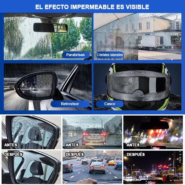 • Úselo en vidrios de automóviles, ventanas, espejos e incluso puertas de ducha para repeler eficazmente la lluvia y el agua, brindando una amplia visibilidad y una claridad sorprendente.