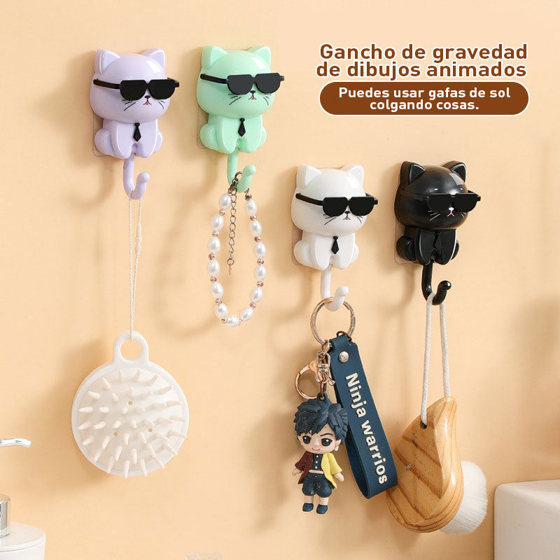 • [Diseño divertido]: estos ganchos de pared cuentan con un gato de dibujos animados en forma de gafas de sol, añadiendo un toque divertido a tu decoración. Las gafas de sol se abren automáticamente, combinando diversión y funcionalidad.