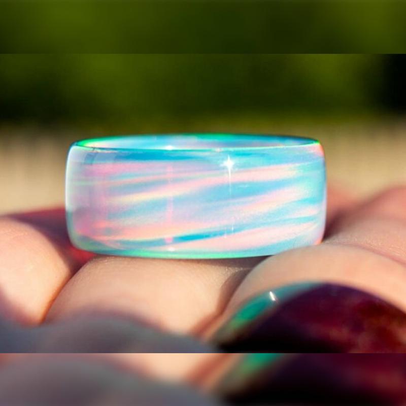 Anillo de Ópalo Azul Nube -Aurora Boreal