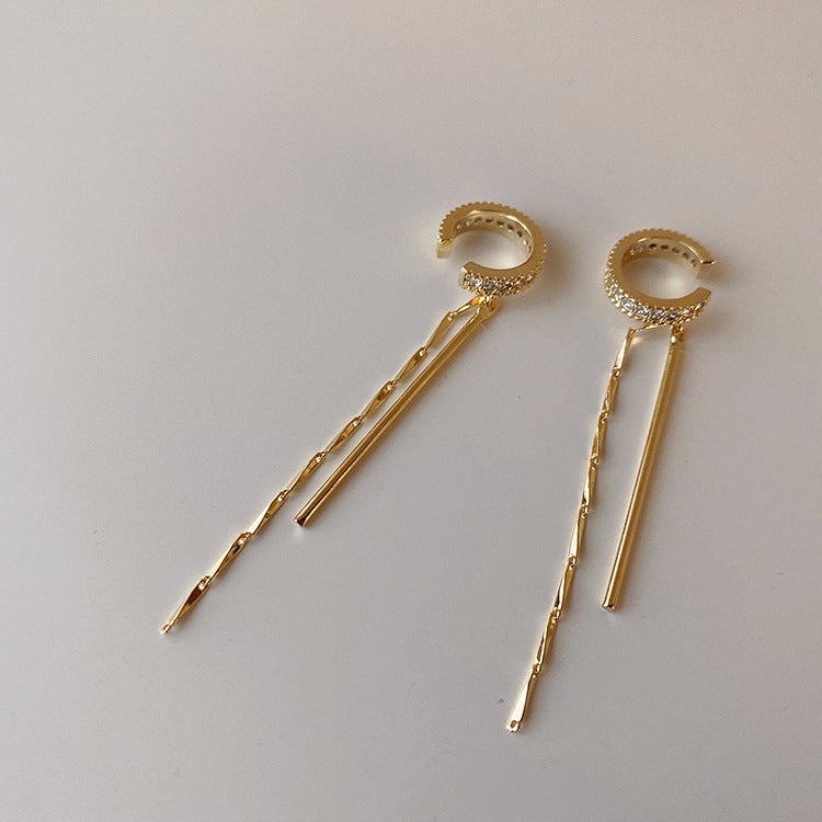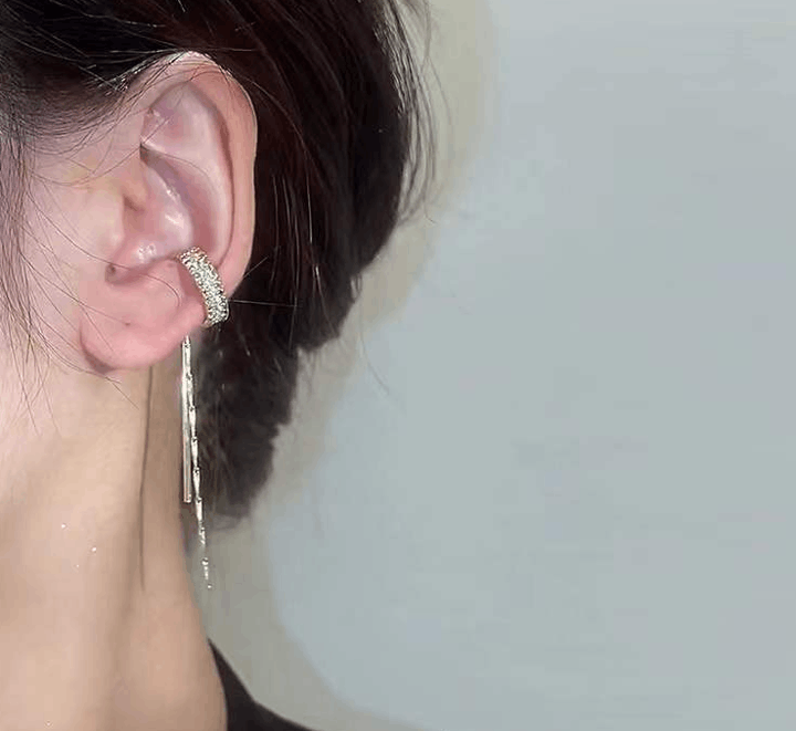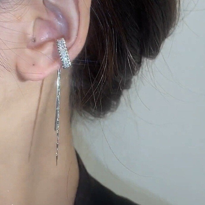 Clip de oreja larga con borla sin piercings