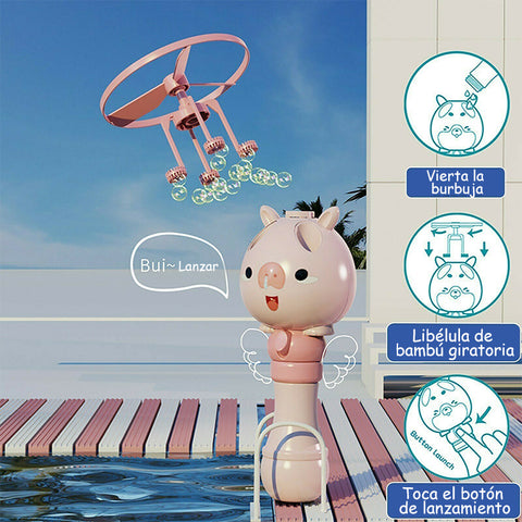 Juguetes de descubrimiento de máquina de burbujas de libélula de bambú