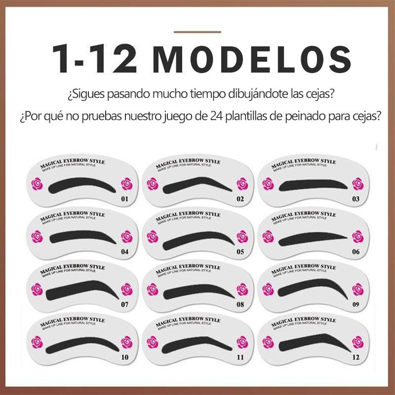 Kit de sellos para cejas con 24 pegatinas para cejas de diferentes estilos