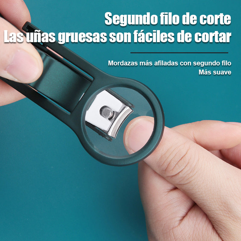 Cortaúñas a prueba de salpicaduras con lupa