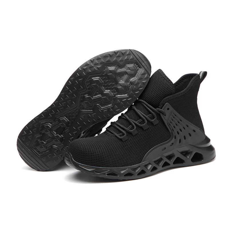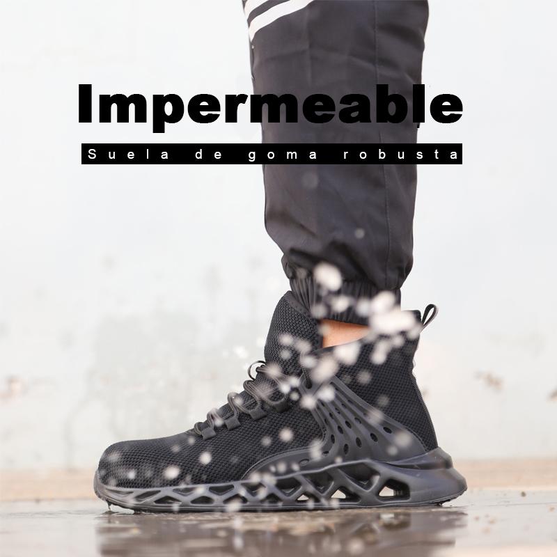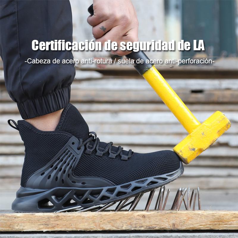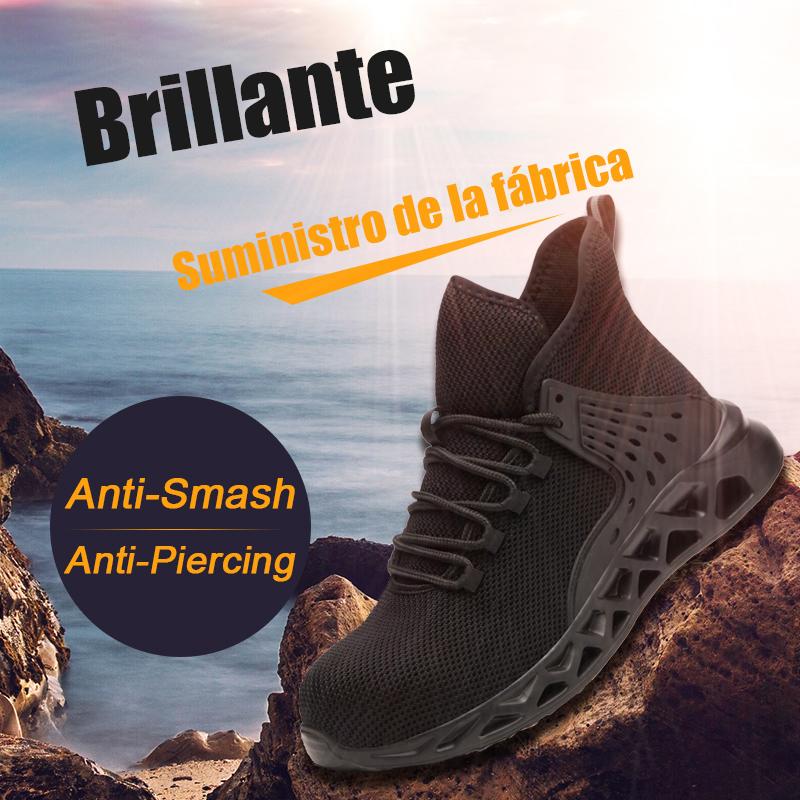• Material exterior: Excelente material superior. Tejido de malla transpirable superior y puntera de acero liviana estándar protege los dedos de sus pies contra el impacto de 220J, la presión anti alcanza los 15000N, lo que reduce la posibilidad de frotarse.