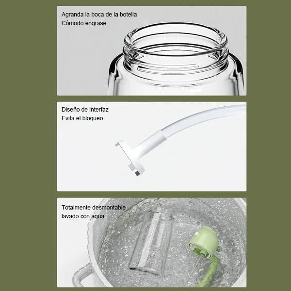 • 🌷Control eficaz del aceite: una simple pulsación del pulgar en la bomba produce 0,2 ml de spray a la vez, lo que le permite cubrir la comida y la olla de manera uniforme, controlando así eficazmente la cantidad de aceite utilizado durante la cocción.