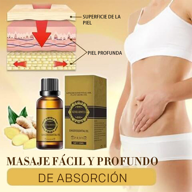 Nuestro Aceite de Jengibre Natural es un aceite revolucionario que quema grasa, reafirma y tonifica el cuerpo. Ayuda a reducir la celulitis y aumenta la firmeza, elasticidad y tono de la piel. Simplemente aplica el aceite para quemar la grasa abdominal: ¡es así de fácil! ¡Acelera tu metabolismo, ayuda a quemar calorías y te ayuda a perder peso mientras duermes!