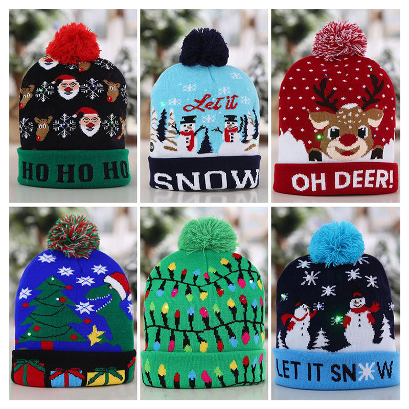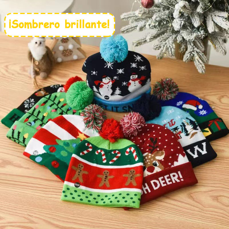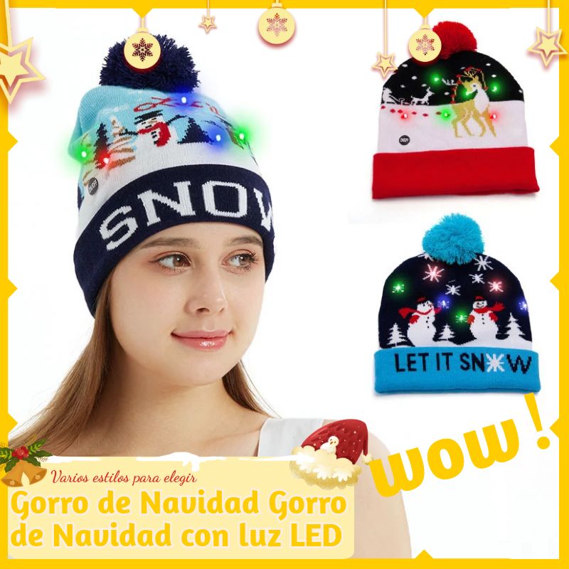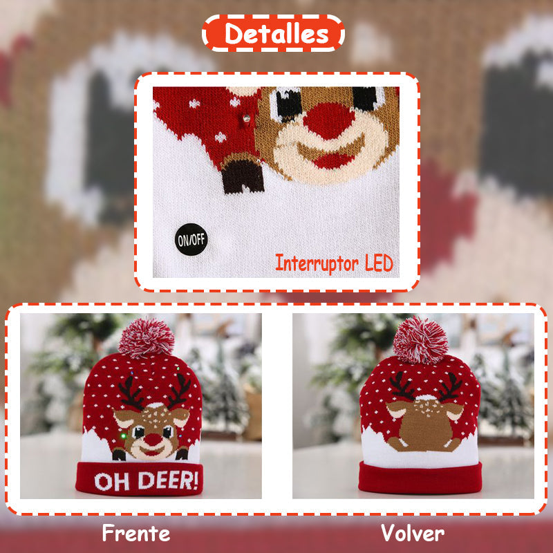 Elegante gorro navideño de punto con luz LED