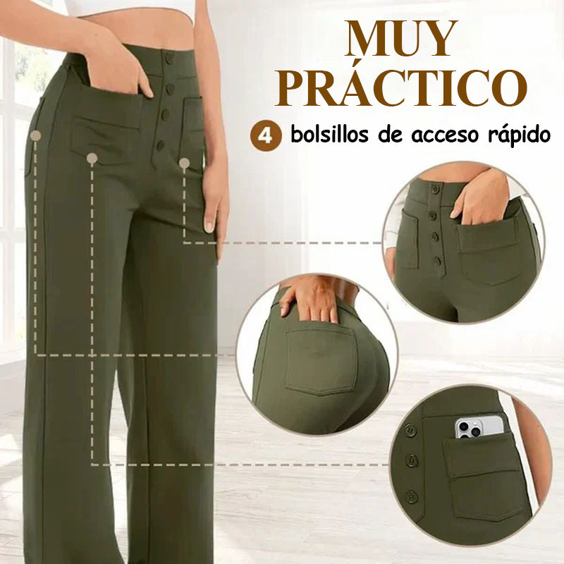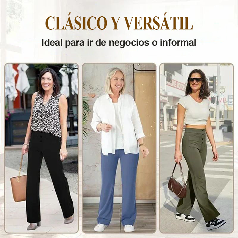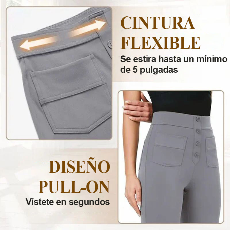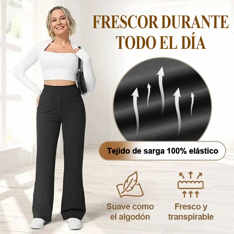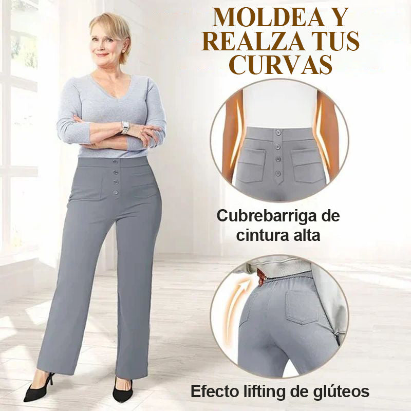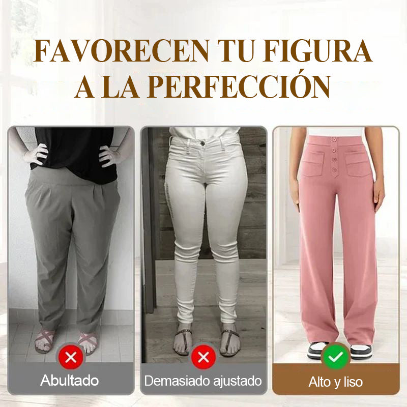 Descubre la elegante silueta de los pantalones elásticos de cintura alta que realzan tu abdomen con comodidad y estilo. Te hará lucir más sofisticada cada vez que lo uses, haciéndolo perfecto para cualquier ocasión.