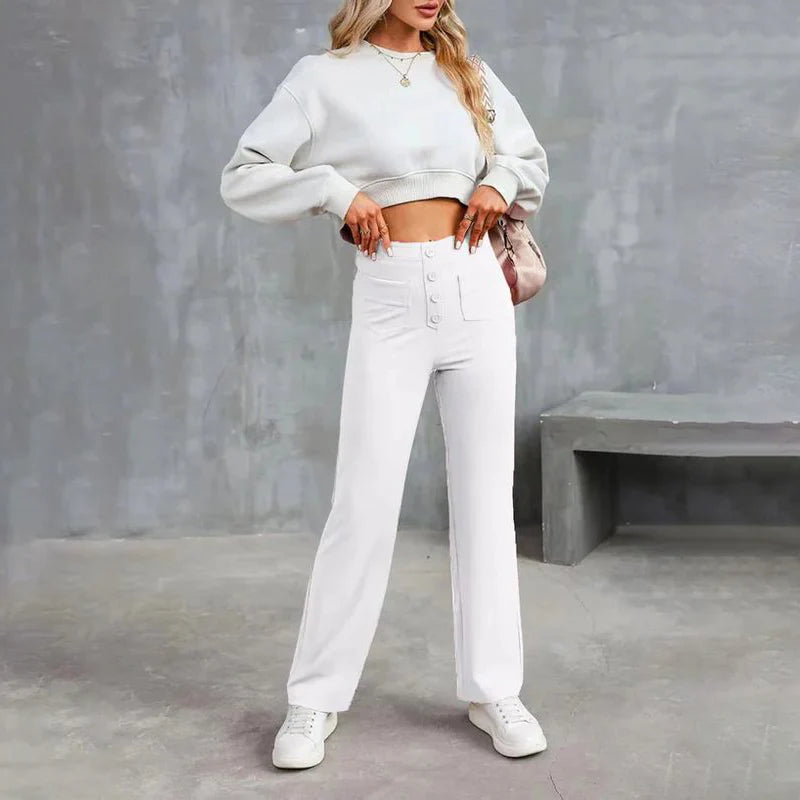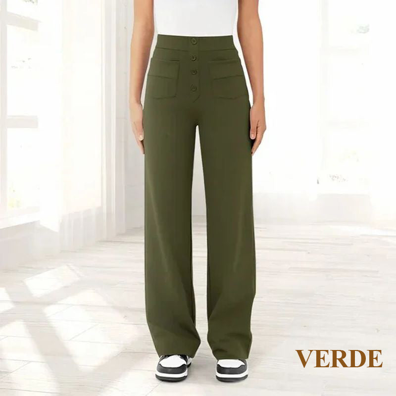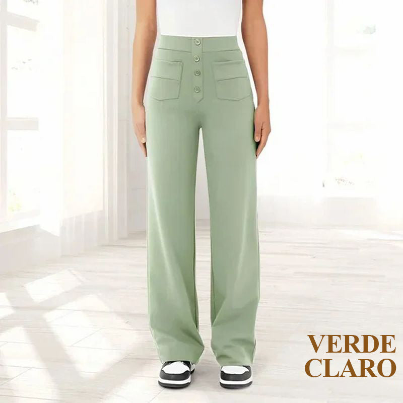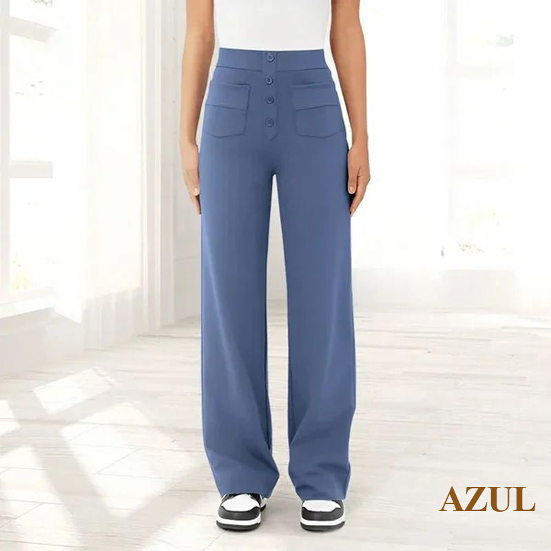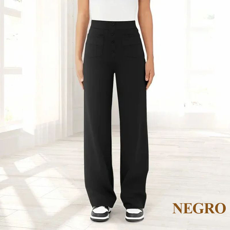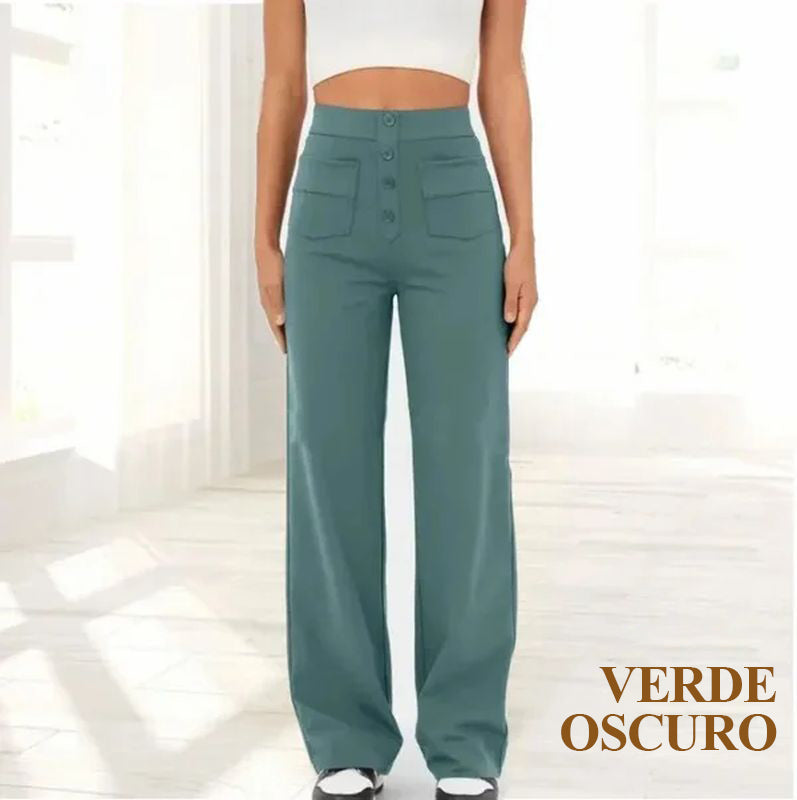 Descubre la elegante silueta de los pantalones elásticos de cintura alta que realzan tu abdomen con comodidad y estilo. Te hará lucir más sofisticada cada vez que lo uses, haciéndolo perfecto para cualquier ocasión.
