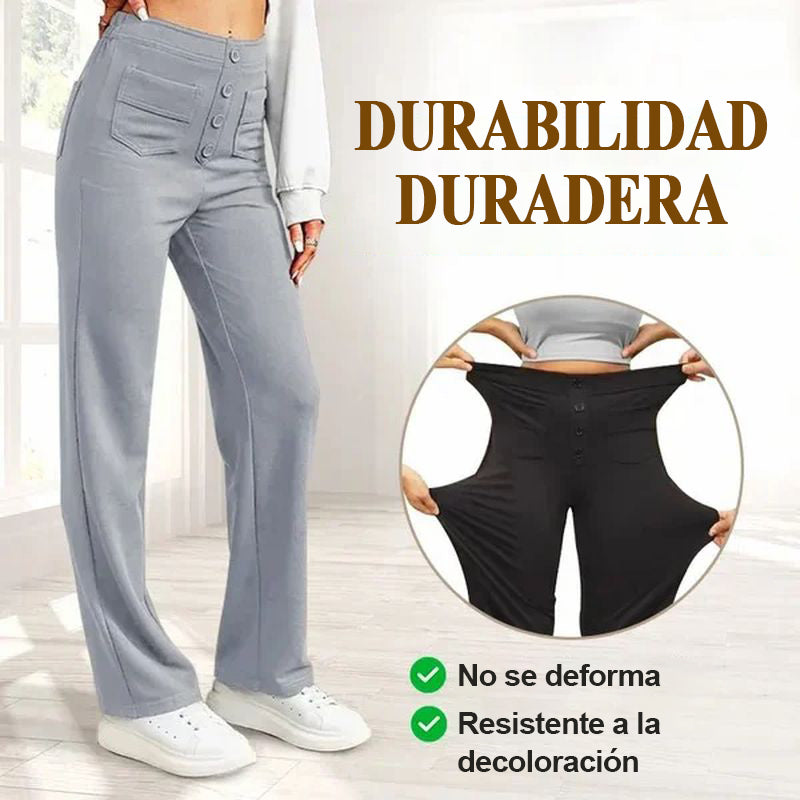 Pantalones elásticos casuales de cintura alta para mujer