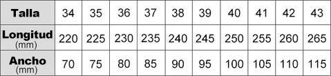 • Si conoce la longitud de su pie, consulte la tabla de tallas para determinar qué talla debe comprar.