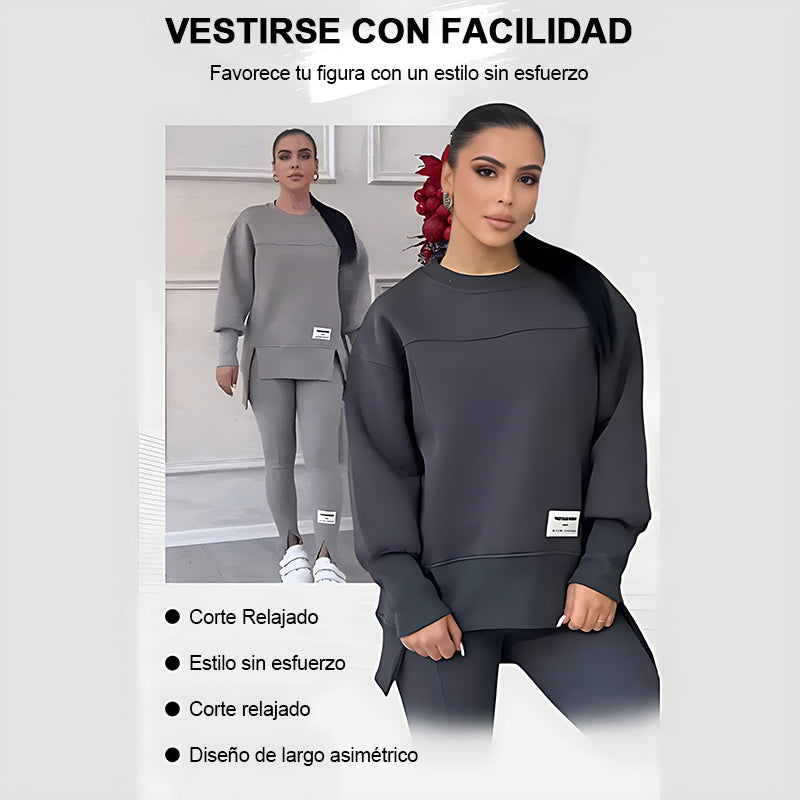 • Diseño de moda: esta ropa deportiva presenta un suéter de cuello redondo de color sólido con un dobladillo irregular, que agrega un toque elegante a tu look. Las medias completan este conjunto, resaltando tus curvas y brindando un ajuste moderno. El diseño versátil te permite usar la parte superior e inferior por separado para crear una variedad de estilos casuales y lindos.